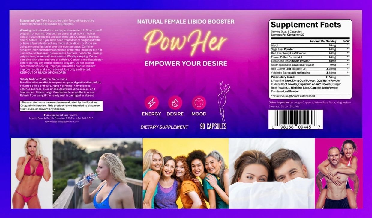 There are 17 all natural ingredients in Powher proven to help aid in increasing a Womens libido.